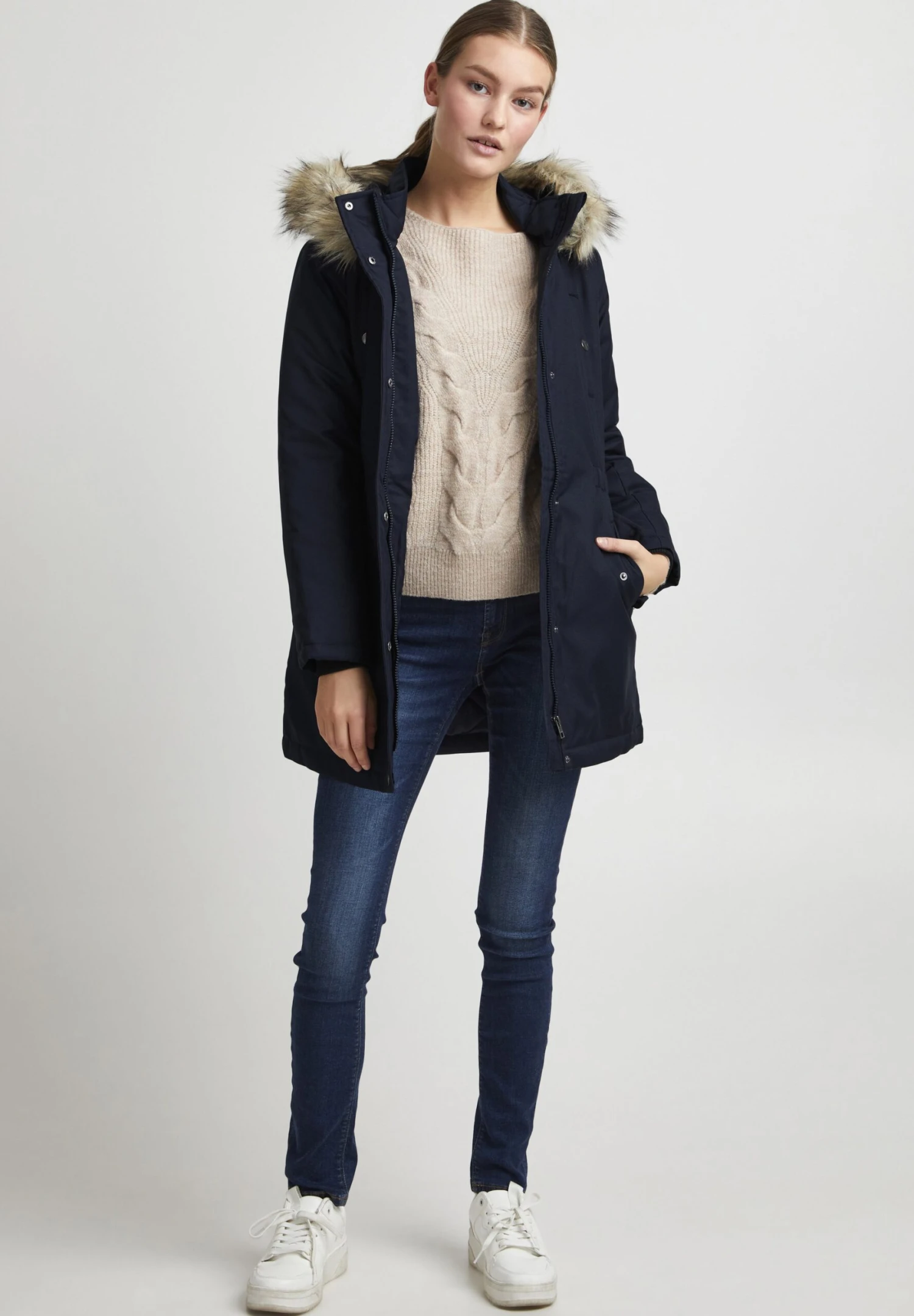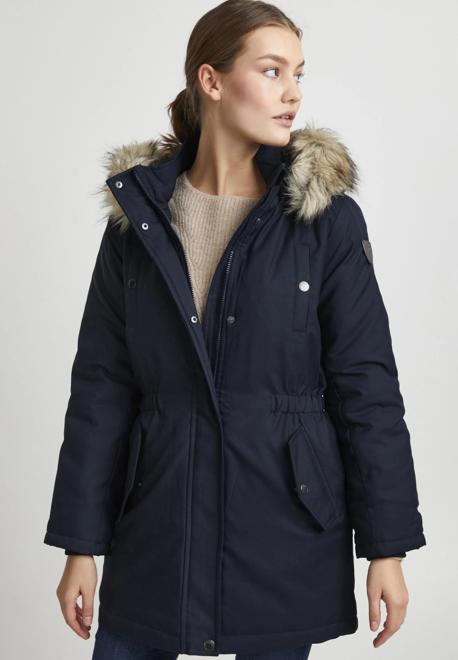 | Detalle capucha | Capucha desmontable de pelo sintético |